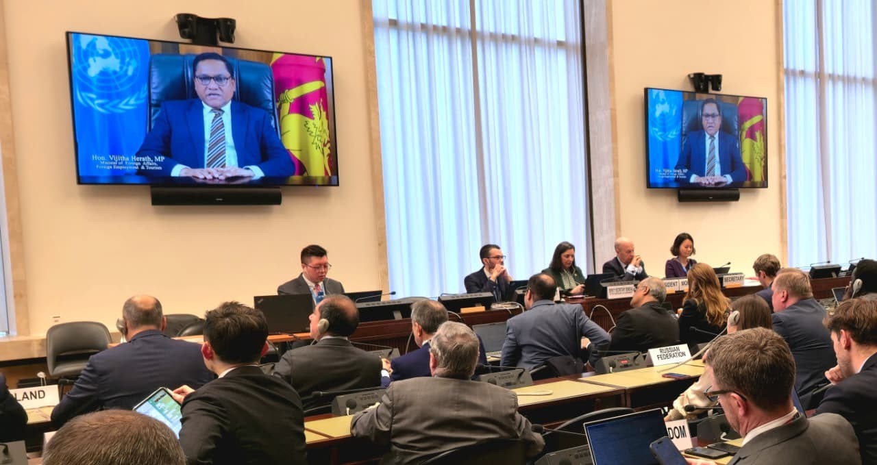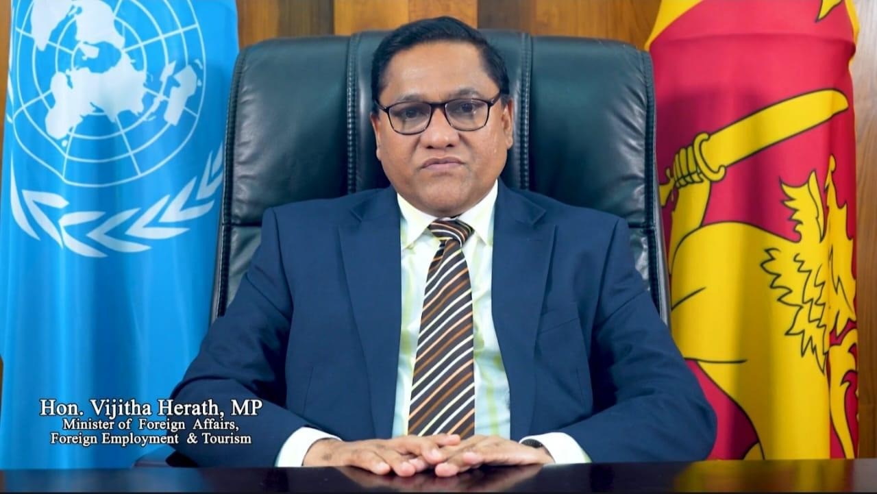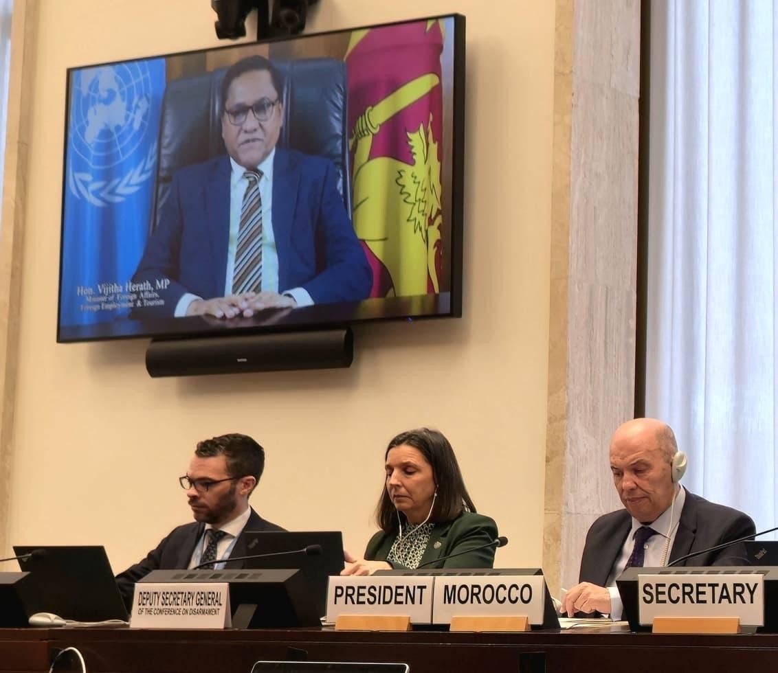 Minister of Foreign Affairs, Foreign Employment and Tourism, Vijitha Herath addressing the Conference via a video message on the first day of the high-level segment, highlighted the importance of a robust multilateral system to overcome the prevailing challenges in the current global landscape to ensure enduring global peace and security to secure a stable world for present as well as future generations.
